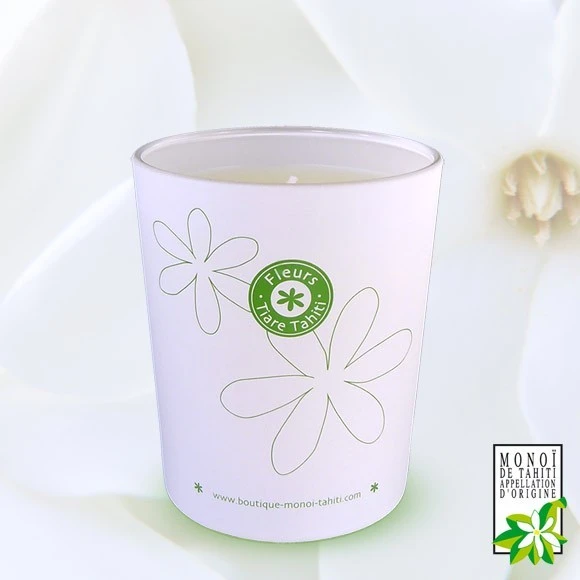 La Boutique du Monoï a élaboré pour vous une Bougie au Monoï de Tahiti parfumée aux Fleurs de Tiare Tahiti.