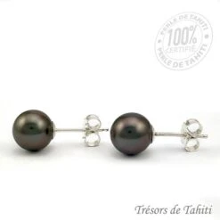 Boucles D’Oreilles Perles De Tahiti Semi Rondes Argent TT408