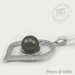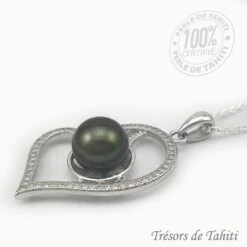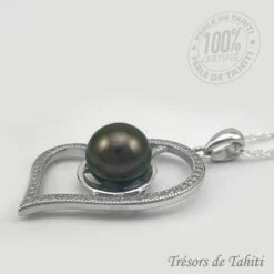 Pendentif Grand Coeur De Perle De Tahiti Chaine Argent TT420
