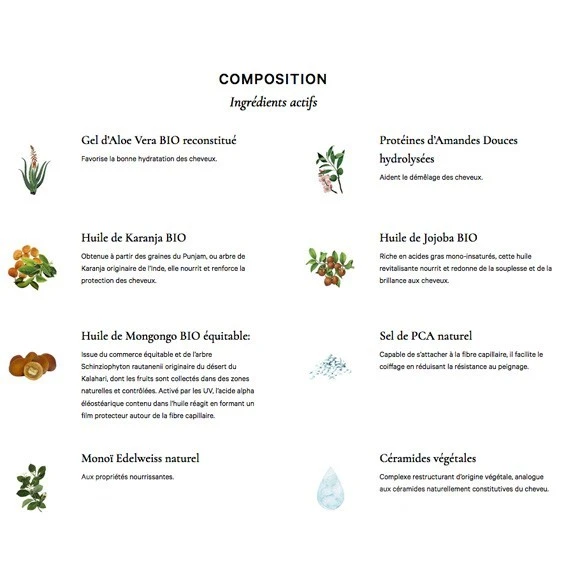 • Sérum réparateur de la fibre capillaire, facile à l’application grâce à sa texture lactée.