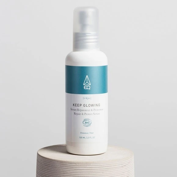 La Boutique du Monoï a sélectionné pour vous Keep Glowing, ce Sérum pour Cheveux de la Marque EQ Certifié BIO par Ecocert® et labellisé Cosmebio®.