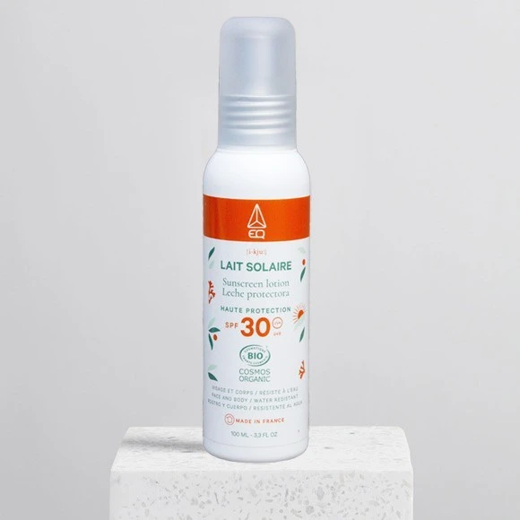 La Boutique du Monoï a sélectionné pour vous ce Lait Solaire Haute Protection SPF30 100mL Visage et Corps de la Marque EQ Certifié BIO par Ecocert® et labellisé Cosmebio®.