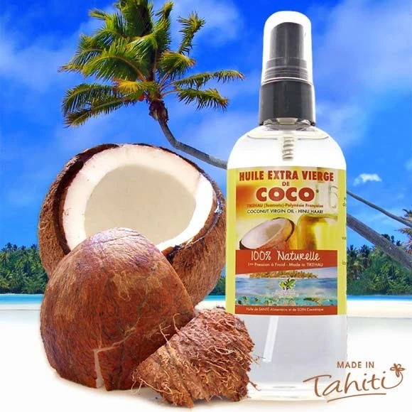 La Boutique du Monoï a sélectionné pour vous cette huile extra vierge de coco fabriquée à Tikehau (Archipel des Tuamotu) par le Comptoir des Plantes Polynésiennes.