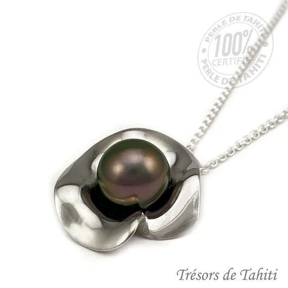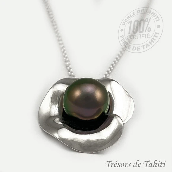 La Boutique du Monoï a confectionné pour vous ce collier en Perle de Tahiti, Poerava en tahitien, certifiée de Polynésie française.