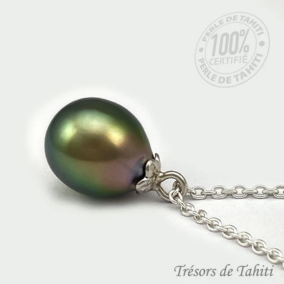 La Boutique du Monoï a confectionné pour vous ce collier en Perle de Tahiti, Poerava en tahitien, certifiée de Polynésie française.