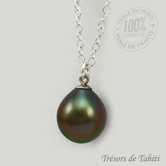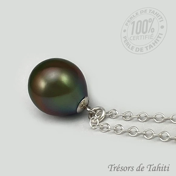 La Boutique du Monoï a confectionné pour vous ce collier en Perle de Tahiti, Poerava en tahitien, certifiée de Polynésie française.