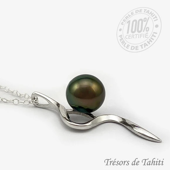 La Boutique du Monoï a confectionné pour vous ce collier en Perle de Tahiti, Poerava en tahitien, certifiée de Polynésie française.