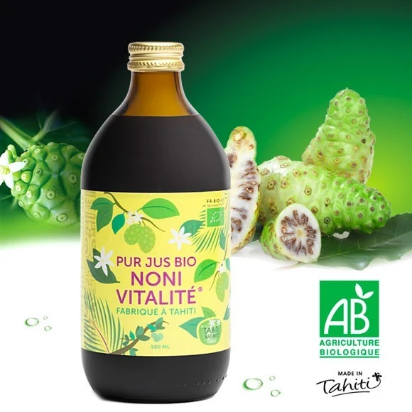 La Boutique du Monoï a sélectionné pour vous ce jus de Noni Bio Tahiti Naturel, pur et sans ajout, pour l’excellence de sa fabrication à Moorea, l’île soeur de Tahiti, permettant de vous garantir un vrai jus de Noni, et ainsi de préserver tous les bienfaits de ce fruit pour votre organisme, véritable concentré d’énergie et de vitalité. Cette bouteille de 500 ml vous permet une cure de 15 jours.