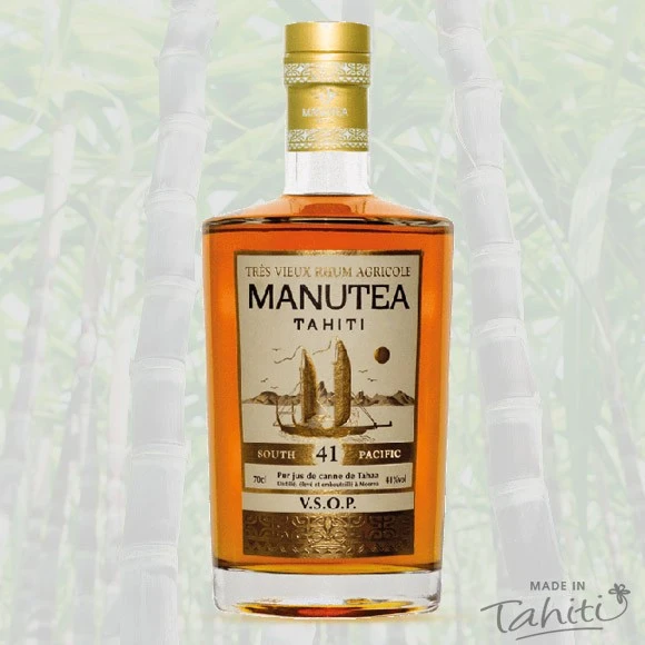 • Rhum Agricole Polynésien, distillé, vieilli, et embouteillé à Moorea par Manutea.